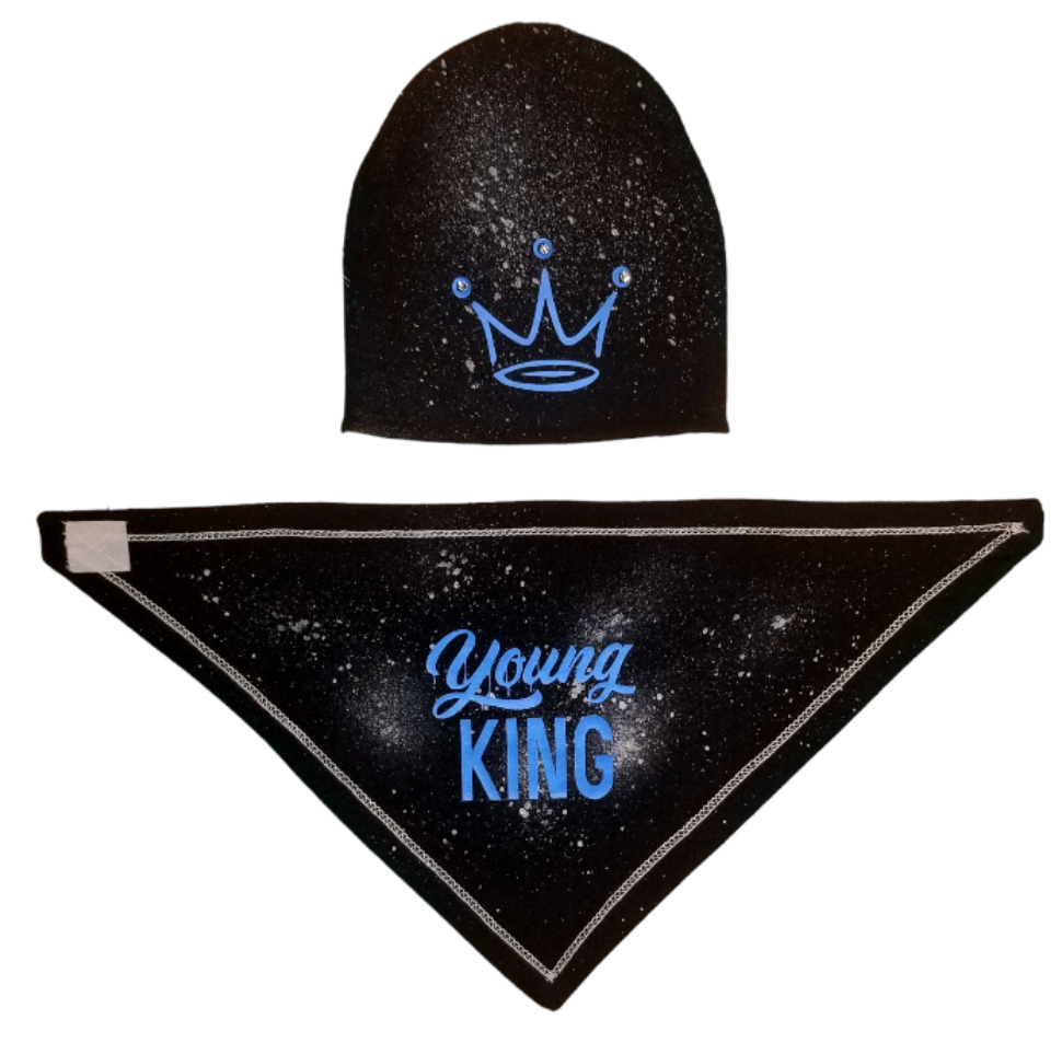 Style your baby like a Lengend in this winning look. This reversible bandana bib and bejeweled cap set features the sayings "Young King" on one side and "Little Legend" on the other side. This is a one-of-a-kind infant gift.