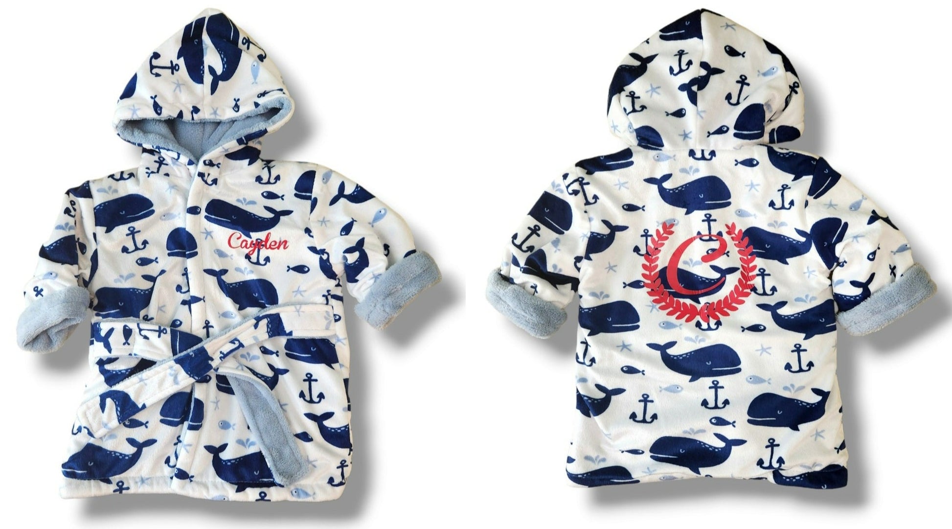 This personalized plush robe will keep your baby warm and dry after bathtime. Their name and single letter monogram will be added to the garment for an extra special touch.