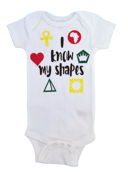 Does your baby know their shapes? Celebrate this milestone with this culture-inspired shirt. Featuring a vivid print graphic with African specific figures, this little onesie will be sure to make a statement.
